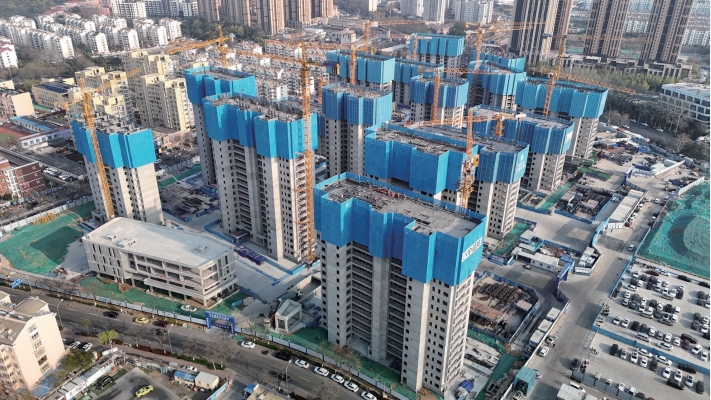 2025年4月13日,青島市李滄區京口路配售型保障性住房項目正在加快推進主體施工。