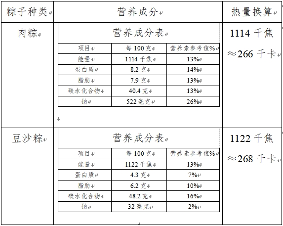 小小粽子有多少能量?下面是兩份營養成分表,一起來看看肉粽、豆沙粽各含有多少熱量吧!