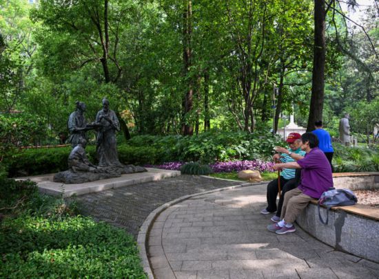 市民在位于上海徐家匯的光啟公園休息(2025年5月17日攝)。新華社記者 陳朔 攝