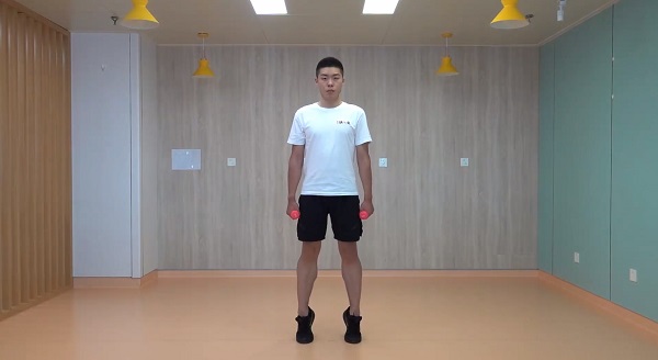 5、提踵:站姿,雙腳與肩同寬,雙手各持啞鈴置于體側或徒手,腹部收緊。雙腳踮起,使腳跟離地至最高點,感受小腿肌肉收縮,踮起階段用時2秒,下落階段用時3秒,一組進行15-20次,重復2-4組,組間休息60秒。