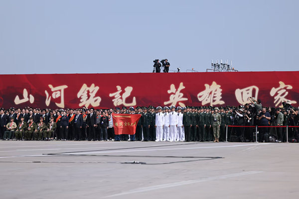 9月12日上午,沈陽桃仙國際機場碧空萬里,30位在韓中國人民志愿軍烈士英靈及267件遺物由我空軍運-20專機從韓國接回祖國。儀式現場莊嚴肅穆,中央和國家機關青年干部與抗美援朝老戰士、烈士親屬、部隊官兵、奧運健兒、勞動模范和青少年學生等1500余名各界代表列隊肅立,齊唱國歌,向烈士遺骸行三鞠躬禮,以此表達對先烈們的深切緬懷和無盡哀思。同日下午,青年代表赴抗美援朝烈士陵園祭掃,參觀“最可愛的人——抗美援朝英烈主題展”,聆聽退役軍人事務部烈士紀念設施保護中心青年紅色文化宣講隊現場講解,深入了解志愿軍英烈可歌可泣的戰斗故事。13日上午,第十二批在韓志愿軍烈士遺骸安葬儀式在沈陽抗美援朝烈士陵園舉行。中央和國家機關青年代表與現場全體人員排隊凝視禮送烈士棺槨,向烈士獻花致敬,并瞻仰烈士英名墻。