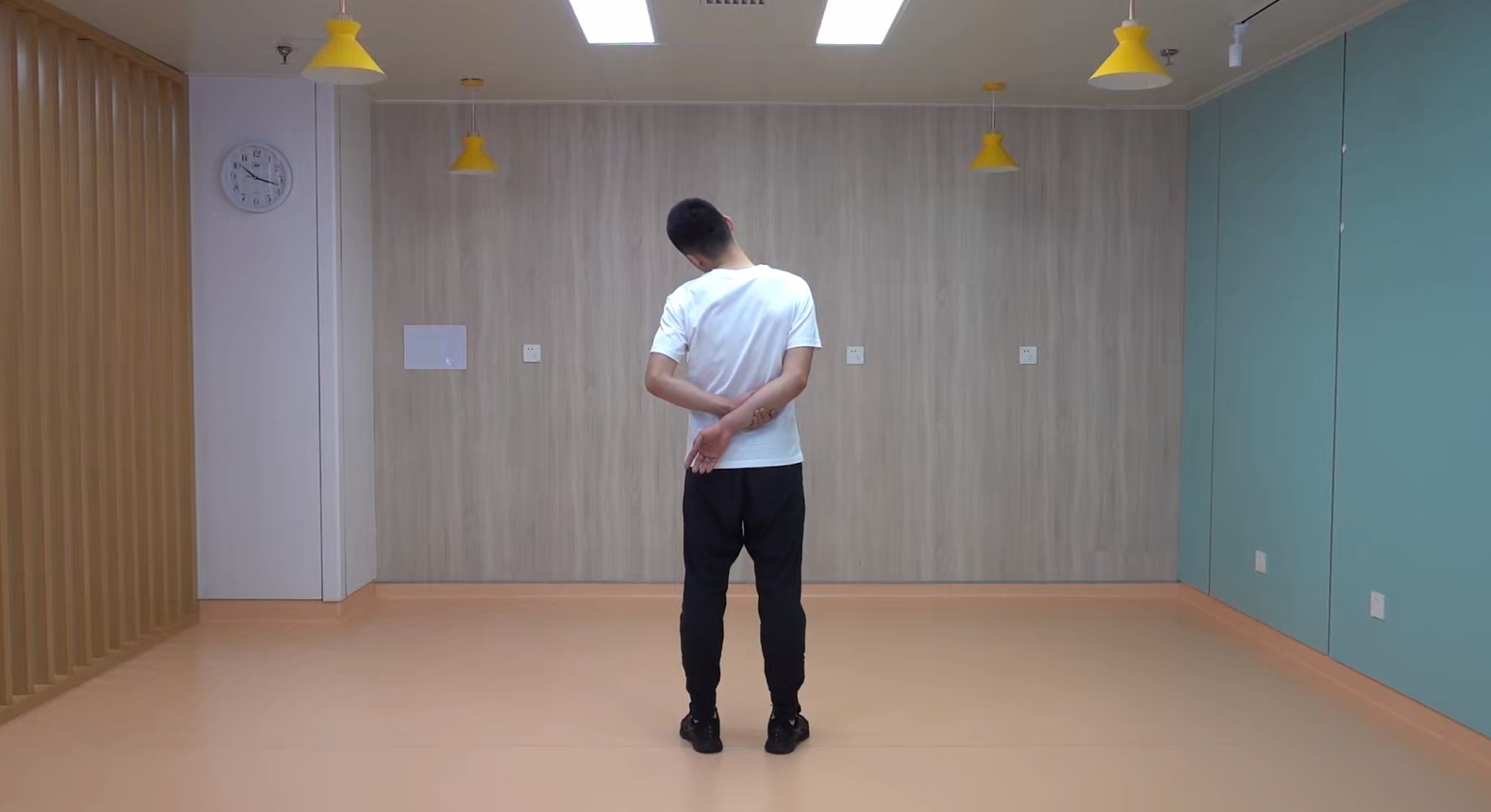 橫向屈頸(手背后式):站姿,雙手背后,一手拉住另一側(cè)腕關(guān)節(jié)向?qū)?cè)拉伸,頸部向一側(cè)側(cè)屈,保持3-5秒,單側(cè)進(jìn)行3-5次為1組,交換對(duì)側(cè),重復(fù)2-3組,組間休息60秒。