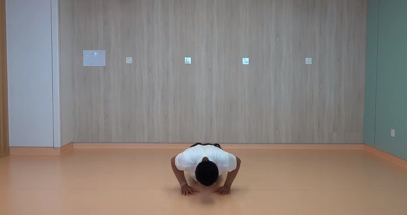 3、俯臥撐(窄撐):腰背挺直,雙腳腳尖及雙手撐地呈俯臥撐姿,雙手盡量靠攏,做窄距俯臥撐。10-12次為一組,做2-3組。