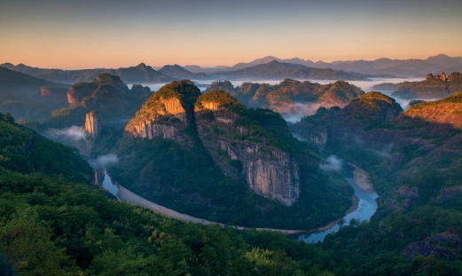 地跨福建、江西兩省的武夷山國家公園,是我國首批正式設(shè)立的5個國家公園之一,同時又是世界文化與自然雙遺產(chǎn)地。圖為武夷山九曲溪。