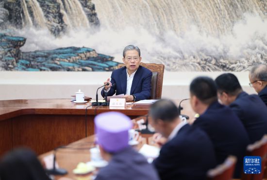 10月27日下午,中共中央政治局常委、全國人大常委會委員長趙樂際同列席十四屆全國人大常委會第十八次會議的全國人大代表座談交流。新華社記者 劉彬 攝