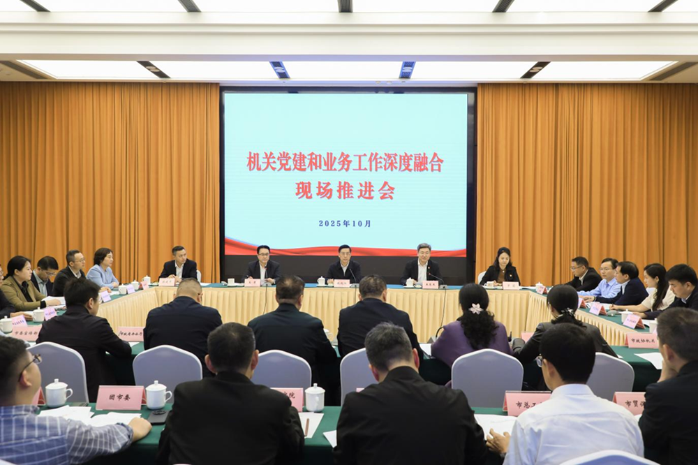 會議強調,當前和今后一個時期,要堅持以習近平新時代中國特色社會主義思想為指導,把深入學習貫徹習近平總書記“7·9”重要講話精神和“7·29”重要指示精神,習近平總書記考察重慶重要講話重要指示精神,黨的二十屆三中、四中全會精神,同市委六屆歷次全會精神結合起來、貫通起來,一體領悟、一體貫徹,堅持黨建統領,深化落實市委“885”工作體系,不斷健全抓黨建帶全局工作機制,進一步推動黨建和業務深度融合,在以高質量黨建促進高質量發展中展現新擔當新作為,為加快建設“六區一高地”、奮力譜寫中國式現代化重慶篇章作出更大貢獻。一要牢牢把握推動機關黨建和業務深度融合的根本遵循。要切實把推動機關黨建和業務深度融合作為帶頭做到“兩個維護”的必然要求、作為做好機關黨建工作的寶貴經驗、作為以高質量機關黨建促進高質量發展的現實需要、作為落實主體責任的重要內容,全面增強推動機關黨建和業務深度融合的使命感和責任感。二要切實找準推動機關黨建和業務深度融合的方法路徑。推動機關黨建和業務深度融合關鍵是找準結合點、提升融合度,確保兩者同向發力、同頻共振、同步提升。要堅持政治鑄魂,把準融合方向,扎實開展政治鑄魂行動,教育引導機關黨員干部無論擔任什么職務、從事什么崗位,都要做到謀事看政治高度、干事看政治影響、成事看政治效果,切實把堅定擁護“兩個確立”、堅決做到“兩個維護”內化于心、外化于行、轉化于效。要堅持思想聚力,夯實融合根基,不斷健全完善體系化學習機制,迭代升級學習模塊,持續深化“每人每月讀一本書”活動,從習近平新時代中國特色社會主義思想中悟規律、明方向、學方法、找答案、增智慧,切實轉化為推動業務工作的方法思路、制度機制、務實舉措。要堅持強基固本,凝聚融合力量,圍繞加快打造具備適應和引領現代化能力的新時代“紅巖先鋒”變革型組織,一體推進“紅巖先鋒·模范機關、四強黨支部、六好黨員”培育選樹和統戰群團建“四家”活動,塑造上下貫通、執行有力的基層黨組織新形態,切實把黨中央決策部署和市委工作要求貫徹落實到“最后一公里”。要堅持正風肅紀,提升融合效果,鞏固拓展深入貫徹中央八項規定精神學習教育成果,縱深推進清廉機關建設,認真開展“袍哥”文化、碼頭文化、江湖習氣整治,持續整治形式主義為基層減負賦能,扎實開展“機關病”和“衙門作風”排查整治,全面提升機關處室執行力,推動機關作風持續向上向好,以過硬的紀律作風保障現代化新重慶建設。要堅持目標導向,抓實融合載體,切實將國家重大戰略和全市中心工作作為機關黨建的“戰場”和黨員干部的“考場”,圍繞中心大局所需、基層群眾所盼、突出問題所在,找準機關黨建和業務深度融合的切入點、突破口,明確具體目標、思路舉措,謀深做實有形載體、有效抓手,精準發力、精準施策,著力提高“以高促高”實戰實績實效。三要不斷筑牢推動機關黨建和業務深度融合的堅強保障。實現機關黨建和業務融合高質高效,必須建立健全制度化、規范化和務實管用的保障體系。要壓緊壓實責任,以深入學習貫徹《重慶市機關單位黨組(黨委)落實機關黨建主體責任實施方案》為契機,健全完善機關黨建“三級七崗”清單,形成橫向到邊、縱向到底的責任閉環。要建立健全機制,健全黨建和業務同謀劃、同部署、同落實、同檢查的聯動機制,實現全方位融合、全鏈條銜接、深層次互動;健全完善激勵機制,政治上多關心、工作上多支持、生活上多幫助、紀律上多教育,激勵廣大機關黨員干部在以高質量黨建促進高質量發展中奮勇爭先。要增強能力本領,配強專職黨務干部、激活兼職黨務干部,有計劃地安排業務骨干、優秀年輕干部從事黨務工作,推動機關專職黨務干部與行政、業務干部之間雙向交流,促進黨務干部懂業務、業務干部懂黨建,不斷提升機關黨員干部推動融合發展的能力。