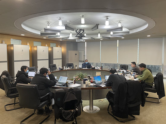 新冠疫情期間,企業(yè)審計(jì)處黨員在審計(jì)現(xiàn)場(chǎng)開展工作。
