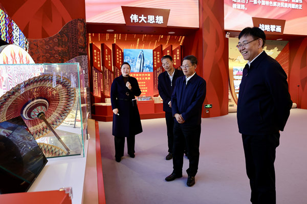 調研組一行聽取了國家民委機關黨建工作情況和基層黨組織以習近平總書記關于加強和改進民族工作的重要思想為根本遵循,聚焦鑄牢中華民族共同體意識主線推動黨建與業務融合互促情況,實地參觀了鑄牢中華民族共同體意識文物古籍展。郭文奇與陳瑞峰就學習宣傳貫徹黨的二十屆四中全會精神、落實機關黨建主體責任、以高質量黨建促進高質量發展的情況進行深入交流,對國家民委層層壓實機關黨建主體責任、以高質量黨建促進民族工作高質量發展的成效給予肯定。