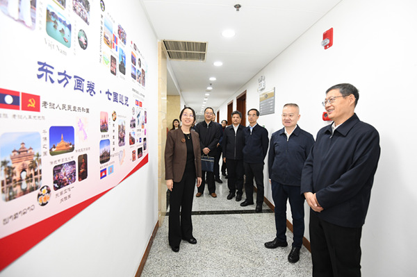 調(diào)研組一行聽取中聯(lián)部二局黨支部學(xué)習(xí)宣傳貫徹黨的二十屆四中全會(huì)精神、服務(wù)習(xí)近平總書記重大外交議程、以高質(zhì)量黨建推動(dòng)黨的對(duì)外工作高質(zhì)量發(fā)展等情況介紹,參觀黨的對(duì)外工作圖片展。郭文奇與劉海星進(jìn)行深入交流,詳細(xì)了解中聯(lián)部抓實(shí)政治建設(shè)、筑牢理論根基、建強(qiáng)基層黨組織、黨建業(yè)務(wù)融合等經(jīng)驗(yàn)做法,并給予充分肯定。