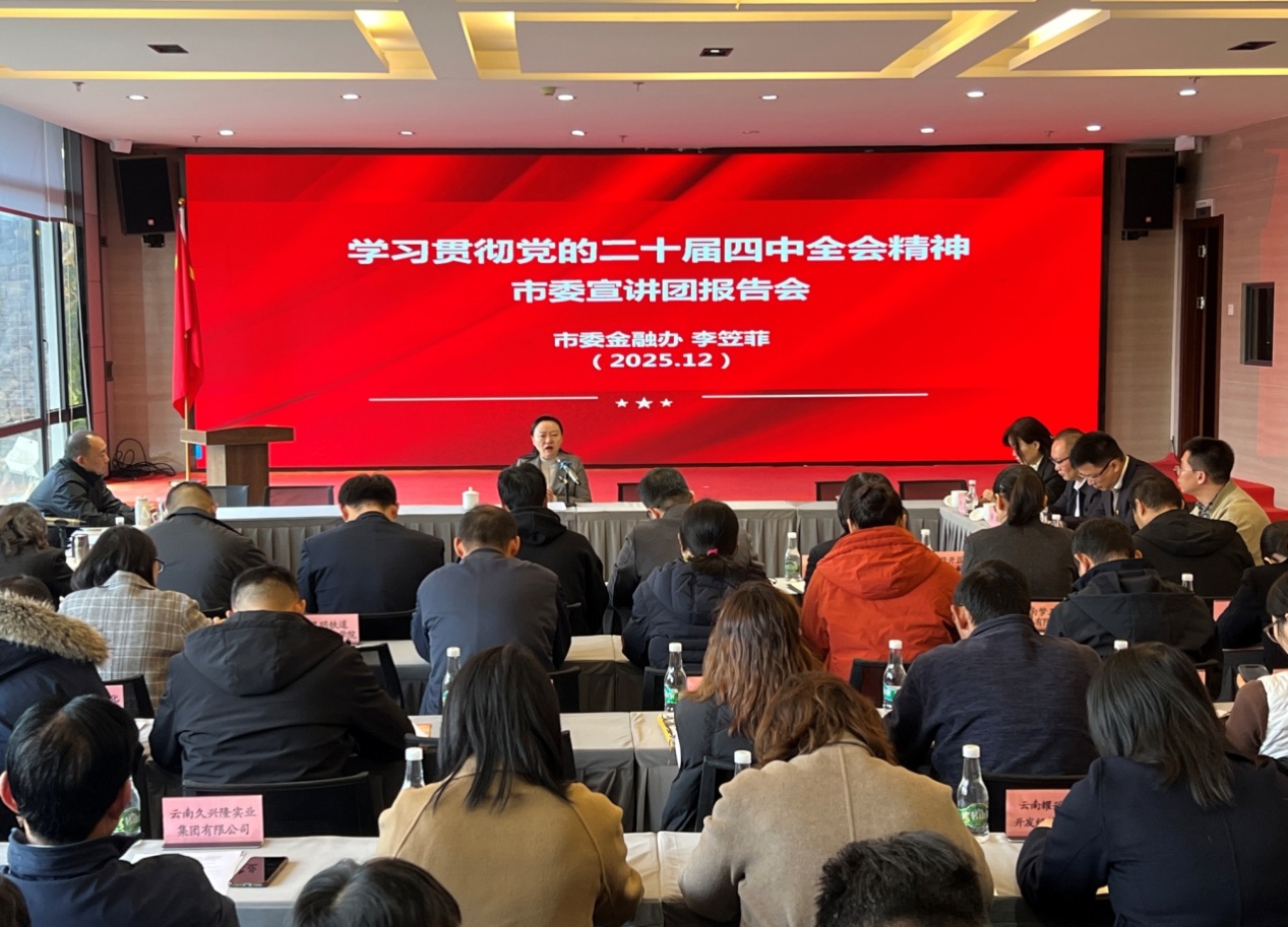 活動中,昆明市委金融工委分管日常工作的副書記李笠菲作學習貫徹黨的二十屆四中全會精神宣講報告。報告緊緊圍繞習近平總書記在黨的二十屆四中全會上的重要講話精神和《中共中央關于制定國民經濟和社會發展第十五個五年規劃的建議》,緊密結合昆明實際,從歷史邏輯、戰略全局、實踐路徑等多個維度,作了系統深入的闡釋,為深刻把握新時期如何貫徹落實全會精神進行了全面解讀和系統輔導。大家紛紛表示,宣講邏輯嚴謹、內涵豐富、認識深刻,現場聆聽深受啟發、備感振奮。