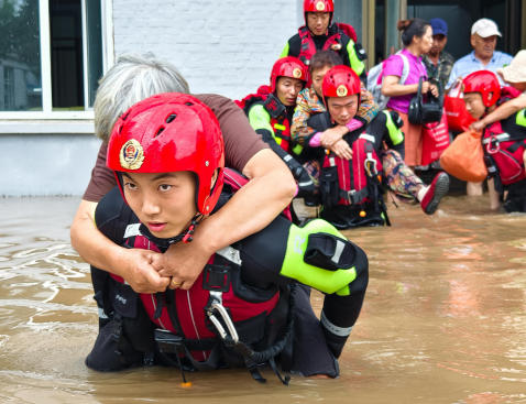 2024年7月31日,黑龍江省牡丹江市西安區溫春鎮發生嚴重洪澇災害,消防救援人員緊急疏散被洪水圍困的群眾。